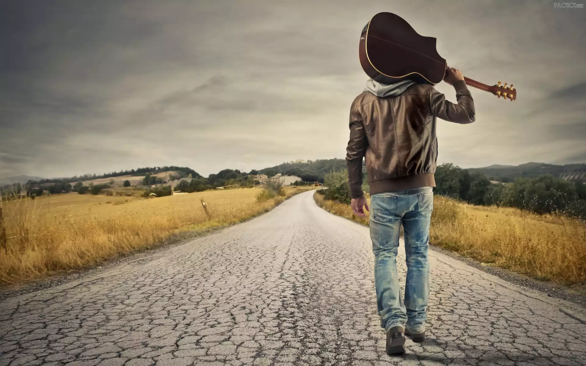 Pole, Gitara, Mężczyzna, Droga - faceci.biz